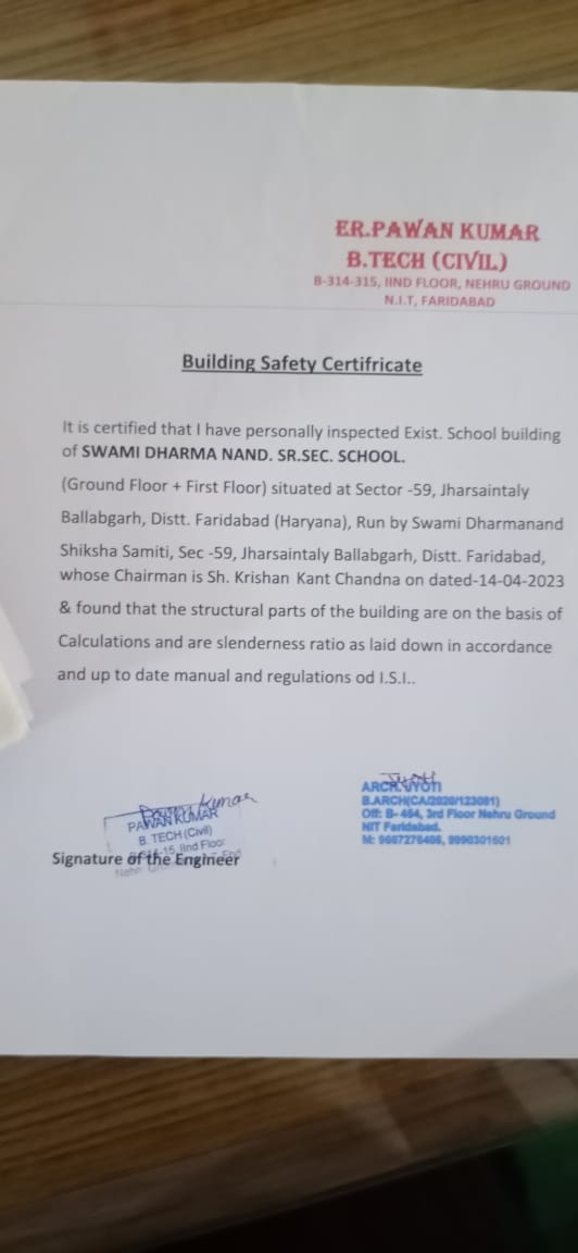 COPY OF VALID BUILDING SAFETY CERTIFICATE AS PER THE NATIONAL BUILDING CODE